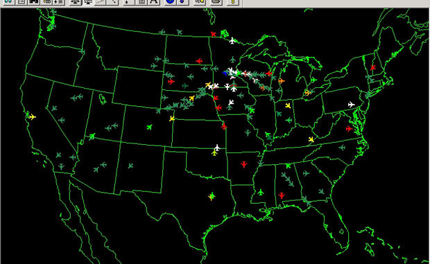 Ejemplo de animación tomando como referencia el tráfico aéreo en Atlanta (Avi. – 13,2 Mb).