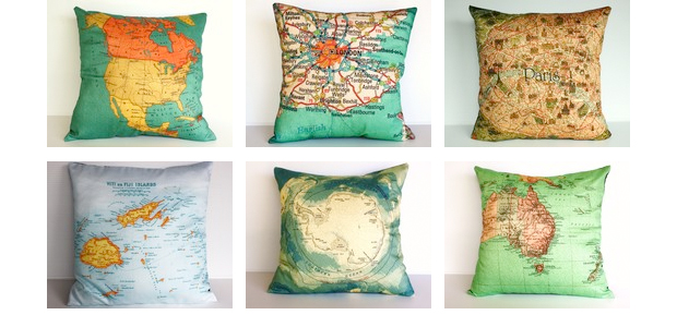 …o las almohadas perfectas para amantes de los mapas y demás fauna afín, diseñadas en Australia por My Bearded Pigeon, pueden comprarse en ETSY.