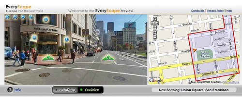 Una anotación de Mapperz ha vuelto a recordarme lo que parece ser una tendencia que evoluciona con rapidez y, posiblemente, se extienda. Más allá de los experimentos de Google sobre el tema, la idea en alza consiste en dar un paso hacia una cartografía interactiva a nivel de «calle». Ya no basta con un mapa con «chinchetas» que muestre bocadillos o cargue información desde archivos KML, no, el siguiente paso es mostrar el mundo real en la web por medio de panorámicas.