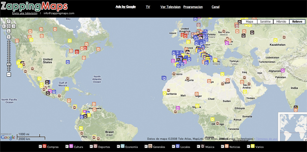Una forma diferente de cambiar de canal televisivo a través de un mapa interactivo con emisoras locales de todo el mundo basado en GoogleMaps: (Lamentablemente, en algunas de las que he «pinchado» he obtenido mensajes de error, pero casi con seguridad se debe a mi conexión).