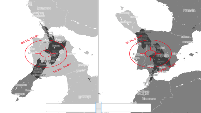Hoy vuelvo sobre el concepto porque hacía bastante que no veía un nuevo mapa acerca del tema. En esta ocasión se trata de un mapa web interactivo creado por Darren Wiens que, si bien no supone una novedad respecto a otros similares, sí es original en cuanto a la forma de representar la visualización de la antípodas. Se puede elegir una versión con soporte WebGL de transparencias o bien otra con diferente dinámica sin ella. En todo caso, dada la distribución de océanos y tierras emergidas de nuestro mundo, las antípodas continentales son bastante escasas. Suerte que, por ejemplo, parte de España coincide con nuestros «vecinos» diametrales, la gente de Nueva Zelanda.