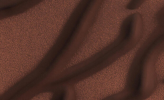 En el ejemplo, vemos dunas lineales localizadas en la región polar norte. Imagen tomada el 22 de Octubre de 2008.