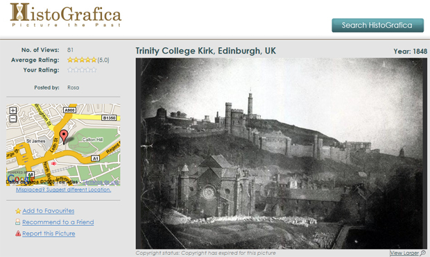 Si tuviera que describir de forma sencilla este proyecto, no dudaría en calificarlo como el Panoramio de las fotografías del pasado. Ciertamente, al igual que en el conocido servicio de geoetiquetado citado, en HistoGrafica se comparten imágenes históricas y se localizan en el espacio: