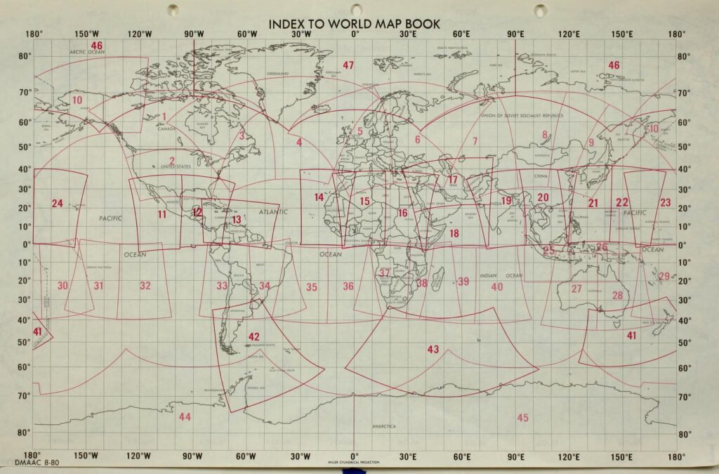…o al menos la primera edición de los mismos. Navegando por archive.org (como siempre, buscando otra cosa hallé esta pequeña joya sin pretenderlo) he encontrado este curioso documento. Se trata de un libro de mapas del mundo publicado en enero de 1981 por la Defense Mapping Agency para la NASA. Al parecer, el destino del documento era ser utilizado en los vuelos del transbordador espacial de los Estados Unidos. He aquí el documento completo…
