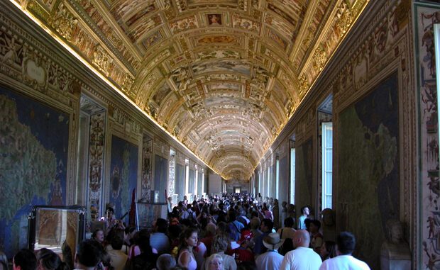 Existe un lugar, de entre el gran número de estancias y obras de arte de la Ciudad del Vaticano, que debe llamar especial atención a los amantes de la cartografía. Se trata de una gran sala abovedada que recibe el nombre de Galería de Mapas debido a los cuarenta frescos que pueden disfrutarse en sus muros y que representan mapas de diversas regiones de Italia y posesiones de la Iglesia durante el papado de Gregorio XIII, en el siglo XVI. Los Apeninos, formando parte de la estructura de la sala, crean una divisoria para distribuir los frescos, realizados entre 1580 y 1585 siguiendo indicaciones del geógrafo y matemático Ignazio Danti. A un lado se encuentran las pinturas que muestran diversas regiones bañadas por el Tirreno y el Ligur. En el otro extremo, aparecen las correspondientes al Adriático. El conjunto es, ciertamente, excepcional y bellísimo.