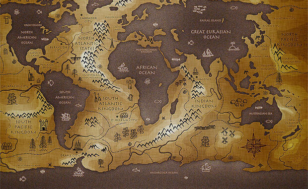 Desde las profundas grutas de Dark Roasted Blend, visita este viernes La Cartoteca un mapa que, en sí mismo, es una obra de arte. Se trata de un imaginario planeta Tierra en el que los continentes emergidos se han convertido en océanos y viceversa, una obra de Vladstudio.