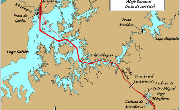 Del Atlántico al Pacífico en un suspiro, gracias a la magia de este vídeo timelapse que nos muestra el recorrido de un navío de pasajeros entre los dos océanos, sorteando las diversas esclusas del Canal de Panamá, todo reducido a menos de dos minutos. (El mapa inferior, procedente de la Wikipedia, puede servir de orientación.)