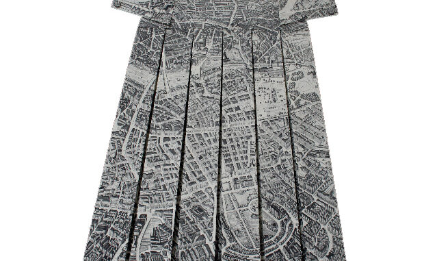 Hoy, vamos a completar la colección con varias inspiraciones geniales y, por supuesto, cartográficas. En primer lugar, vestiremos algo de carto-ropa diseñada por Elisabeth Lecourt, toda una obra de arte. (Vía GeoBloggers).