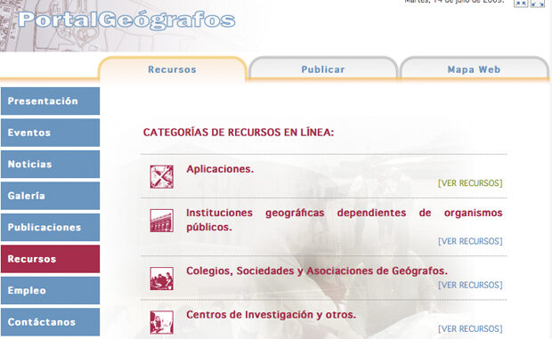 Portal Geógrafos – Este portal nace de la inquietud de un grupo de universitarios y profesionales de la Geografía ante la necesidad de crear un lugar de encuentro donde compartir la información que genera el desarrollo de nuestra actividad, tanto en el ámbito académico como en el profesional.