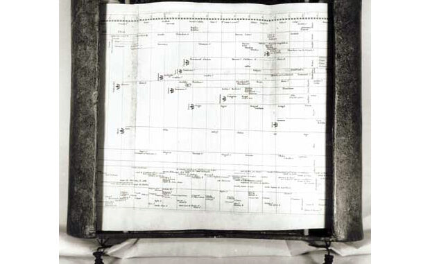 En 1753 Jacques Barbeu-Duborg, traductor al francés de las obras de su maestro, Benjamin Franklin, alumbró su Carte chronologique, un imponente gráfico en forma de rollo de papel con más de 16 metros de longitud, escondido en el interior de una caja reforzada. Su idea seguía la estela de tantos otros, pues se propuso ordenar en diversos ejes los hechos más sobresalientes de la historia del mundo. Por desgracia, no he encontrado imágenes de gran tamaño que muestren con detalle este trabajo.
