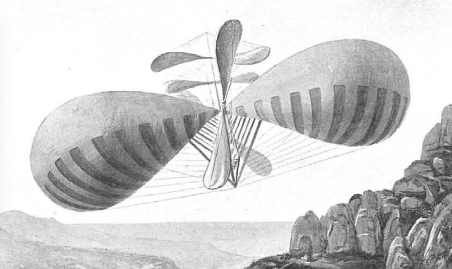 A ambos lados del “fuselaje” central o armadura se disponían grandes globos elipsoidales, muy alargados, con un diámetro máximo de seis metros. El ingenio contaría con un curioso sistema de inyección de aire en los globos de control y lastre, válvulas de seguridad para regular la presión y un conjunto de globos ascensiones de hidrógeno protegidos por una malla metálica. La cabina contaría con todo tipo de instrumental avanzado de su época.