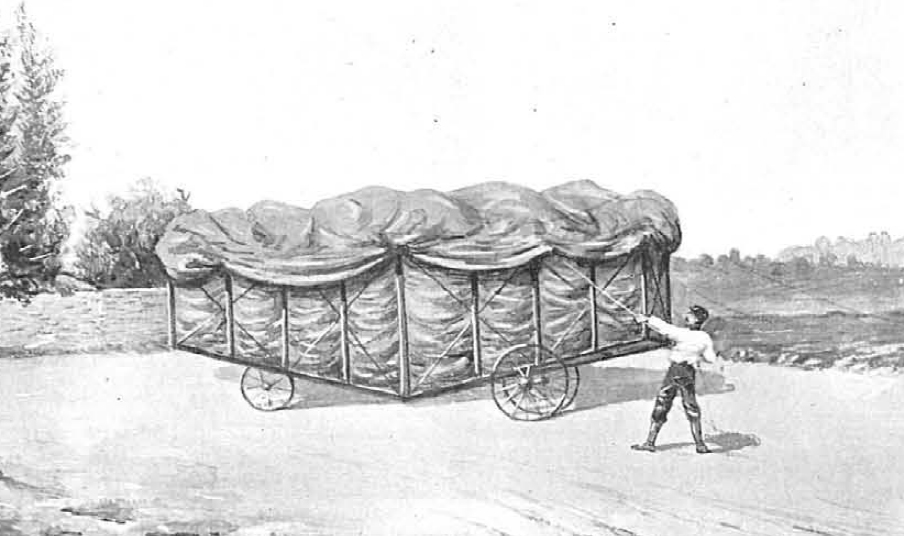La máquina todoterreno que presentó por aquellos días consistía en una nave central construida alrededor de una gran viga metálica fabricada con una por entonces novísima aleación de aluminio, alrededor de la cual se disponían todo tipo de módulos adaptables capaces de contener motores, flotadores, timones y sistemas con ruedas. El conjunto venía a ser como un vehículo articulado modular que, dependiendo de la ocasión, podía volar, rodar o flotar a conveniencia. Con una armadura de 33 metros de eslora y un diámetro máximo de unos 4,50 metros, dotado de tres motores de gasolina, depósitos para combustible, agua y víveres, no puede decirse que se tratara de algo pequeño. El sistema para controlar el vehículo en el aire era muy ingenioso: varios grupos control sencillos asociados a conjuntos de grandes hélices, dos en eje horizontal y dos montadas en eje vertical. Jugando con el comportamiento de esas hélices, el inventor pretendía poder hacer que la nave se moviera a voluntad tanto en su capacidad de ascenso y descenso como en los giros e inclinaciones.