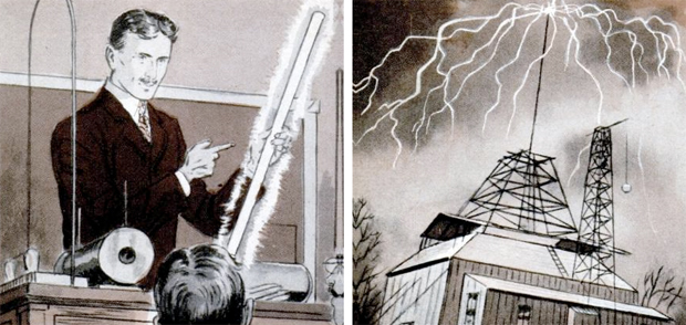 En julio de 1956 la revista Popular Science publicó, aprovechando la celebración del centenario del nacimiento de Nikola Tesla, una pequeña biografía ilustrada que glosaba diversos episodios de la vida del genio de la electricidad. Bien, ya sé que está en inglés y eso supone una limitación para algunas personas, pero no por ello deja de ser una auténtica delicia, obra de Gardner Soule: