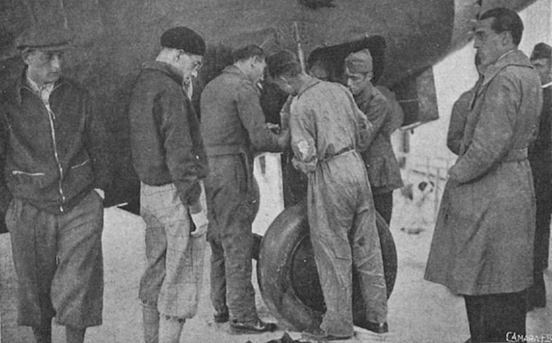 A finales de 1929 los tripulantes del Pájaro amarillo regresaron a España, de paso hacia Portugal, y de nuevo de vuelta, para pasar unos días en medio de su gira triunfal por Europa. Las siguientes fotografías fueron tomadas en Cuatro Vientos durante su paso por Madrid.