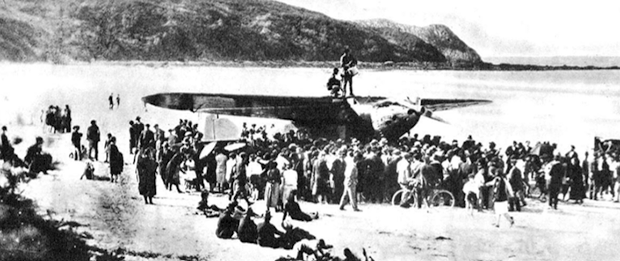 Pronto la playa se llenó de curiosos. Assolant, Lefèvre, Lotti y el polizón, después de casi treinta horas de vuelo y unos 6.000 kilómetros recorridos, se encontraron con una acogida que no esperaban. El vuelo se había torcido, la tripulación había encontrado una fuerte tormenta cerca ya de tierra continental que había desviado el aparato hasta el norte de España. Intentaron no romper con su ruta inicial, pero al ascender para tratar de sortear la tormenta, se habían encontrado con temperaturas gélidas. Total, ante algo así no les quedó más remedio que buscar con prisas un lugar adecuado para descender sin peligro antes de quedarse sin combustible5. Vale, no era lo ideal, pero no estaba nada mal, porque las cosas podían haber terminado mucho peor. Tal y como narraba El Heraldo de Madrid en su edición del sábado 15 de junio de 1929: