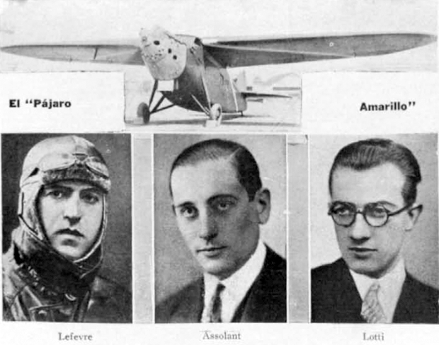 A las ocho de la noche aterrizó en la playa de Oyambre el avión «Pájaro amarillo». (…) El vecindario de Comillas acudió presuroso a prestar auxilio a los aviadores. Estos descendieron del aparato y manifestaron que se habían visto obligados a aterrizar por falta de gasolina. Acompañados de las autoridades y el vecindario, que aclamó a los aviadores, se dirigieron en un automóvil a la fonda La Montañesa, donde se hospedaron. El aparato quedó custodiado por fuerzas de Carabineros y de la Guardia Civil de la villa, que prestan servicio en la playa. Con los dos pilotos venía un mecánico y un chico que al despegar el aparato se había colado en la cabina, haciendo el viaje con los aviadores, que se manifestaron muy sorprendidos por la presencia de aquel inesperado compañero de viaje. Un grupo de señoritas comillanas obsequió a los aviadores con ramos de flores, y éstos correspondieron dedicando autógrafos. Los aviadores son muy atendidos y agasajados por las autoridades y el vecindario. (…) También ha sufrido el avión la rotura de una pieza. Los aviadores se dirigieron a la Administración de Correos, donde depositaron varios paquetes de cartas que llevaban a París, con el fin de que sigan su destino. Como mascota llevan un pequeño caimán vivo.