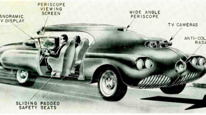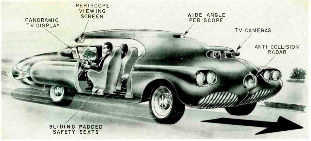 - Tal y como el propio Manfred explicaba en 1961 en las páginas de la revista Radio-Electronics magazine, el lograr una solución como esa era cosa de ingenieros electrónicos, como él, que llevaba décadas trabajando en el desarrollo de la televisión. ¿Qué mejor que blindar el frontal de los coches y circular disfrutando de una pantalla panorámica?