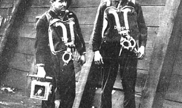 Mineros inspeccionando una mina de carbón con canarios enjaulados (Alrededor del Mundo, 20 de mayo de 1918).