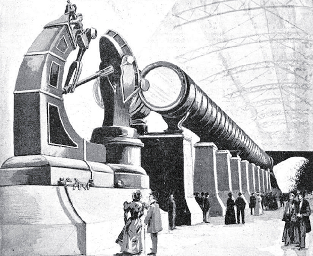 Esta es la historia de una máquina, un monstruo metálico que fue concebido casi como una broma, se llevó por delante un presupuesto nada desdeñable y, tras varios meses de gloria siendo objeto de admiración por parte de medio mundo, terminó sus días como vulgar chatarra. Una pena, ciertamente, porque aunque el gran telescopio de la Exposición Universal de 1900 fuera un fiasco, sólo por su tamaño y su original concepción, merecía un destino más amable…