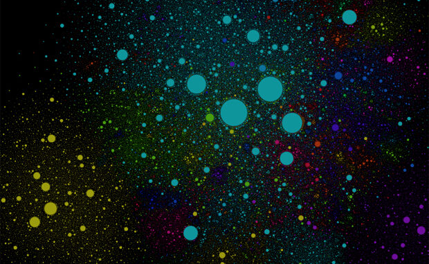 Este particular mapa de Internet es bidimensional y representa aproximadamente los 350.000 sitios de la red más importantes por tráfico, abarcando 196 países. Algunos sitios se han agrupado por temática, aparecen todas las zonas de dominio y las relaciones de enlaces entre diversos sitios. Cuanto mayor es el tráfico del sitio, más grande es el círculo, por lo que son proporcionales a ese parámetro. En definitiva, un mapa interactivo de la red (permite la búsqueda por dominios o países) a modo de foto fija de su situación con datos de finales de 2011. Acceso al mapa y al blog con información que lo acompaña: The Internet Map.