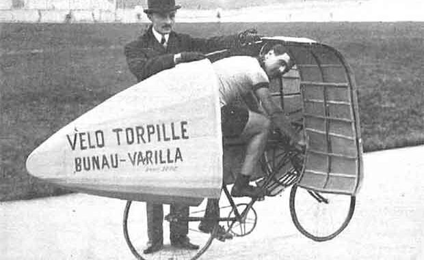 Conocida es la teoría de la mejora de la bicicleta que, reduciendo la resistencia del aire, permite al ciclista alcanzar velocidades muy superiores a las conseguidas sin su auxilio. Partiendo de este principio, se ha estudiado la manera de dotar a la bicicleta de una especie de cortaviento y han sido varios los fabricantes que han construido aparatos de ese tipo. Pero estos aparatos se deformaban fácilmente y además originaban remolinos, así que pronto cayeron en desuso. El problema, sin embargo, ha sido recientemente resuelto por el joven ingeniero francés Sr. Bunau-Varilla con su velo-torpedo que consiste en un armazón de madera rígida, con forma de huevo, cubierta con una tela lisa y muy tirante. De este modo, al mismo tiempo que se vence la resistencia del aire, se evitan los remolinos. En los ensayos últimamente efectuados en París, el ciclista Berthet ha logrado con este aparato batir su propia marca, que era de 50.992 metros por hora, alcanzando una velocidad de 57.325.