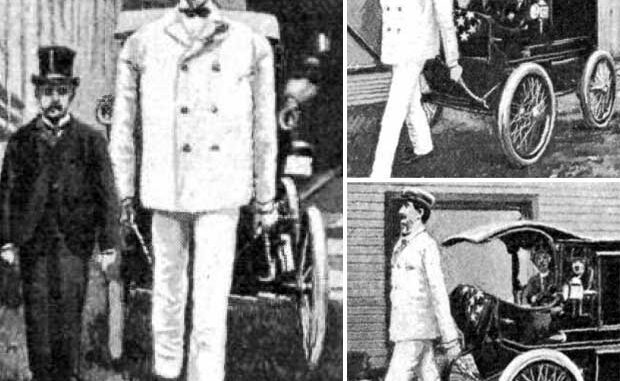 Vale, era palabra de máquina, solo que había un matiz importante. El artilugio movía las piernas, pero no tiraba del vehículo, como es lógico. Todo era un complejo mecanismo de relojería pensado para que pareciera que el hombre de metal era quien tenía el protagonismo. En realidad, el coche tenía tracción trasera eléctrica, así de sencillo. En la mayor parte de las demostraciones se utilizaba un motor animado por baterías, pero cuando se deseaba recorrer un trecho considerable, se empleaba un pequeño motor de gasolina. Hombres automáticos como el de Perew fueron usados en ferias, campañas comerciales y políticas, llamando mucho la atención de la gente allá por donde pasaban. No se puede decir que caminaran realmente, pero lo importante era que parecía que lo hacían.