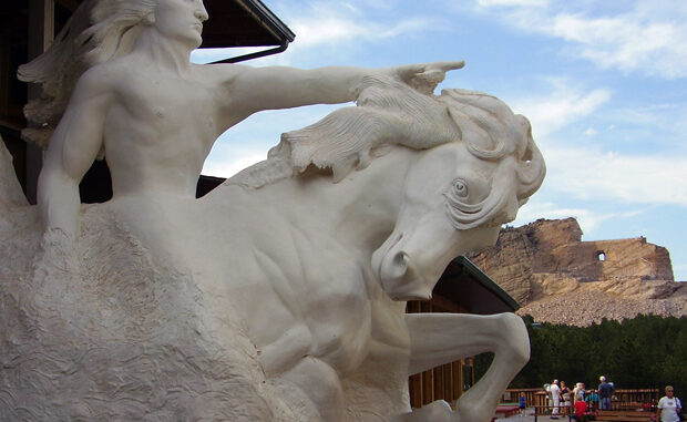 Resulta intrigante cómo a los humanos les apasiona esculpir montañas para crear solemnes formas en ellas. Posiblemente, el caso más famoso se localiza en el Monte Rushmore, Dakota del Sur, donde se tallaron los gigantescos bustos de 18 metros de Washington, Jefferson, Theodore Roosevelt y Lincoln. Tan mediático monumento, que ha aparecido en cómics, libros, películas o dibujos animados, tiene un competidor cercano, menos conocido pero igualmente gigantesco.